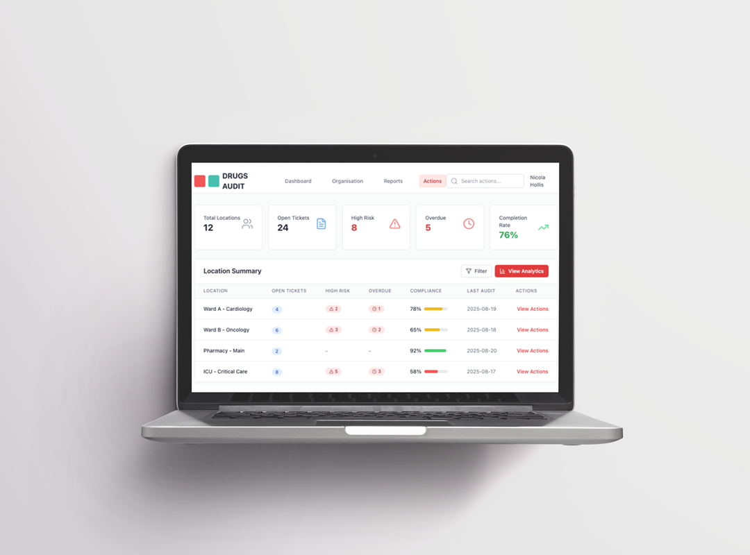 Drugs Audit is a digital platform for auditing medication (e.g. controlled drugs) in all healthcare settings. Their platform simplifies the management of audit data, enhances reporting capabilities, and supports efficient decision-making.